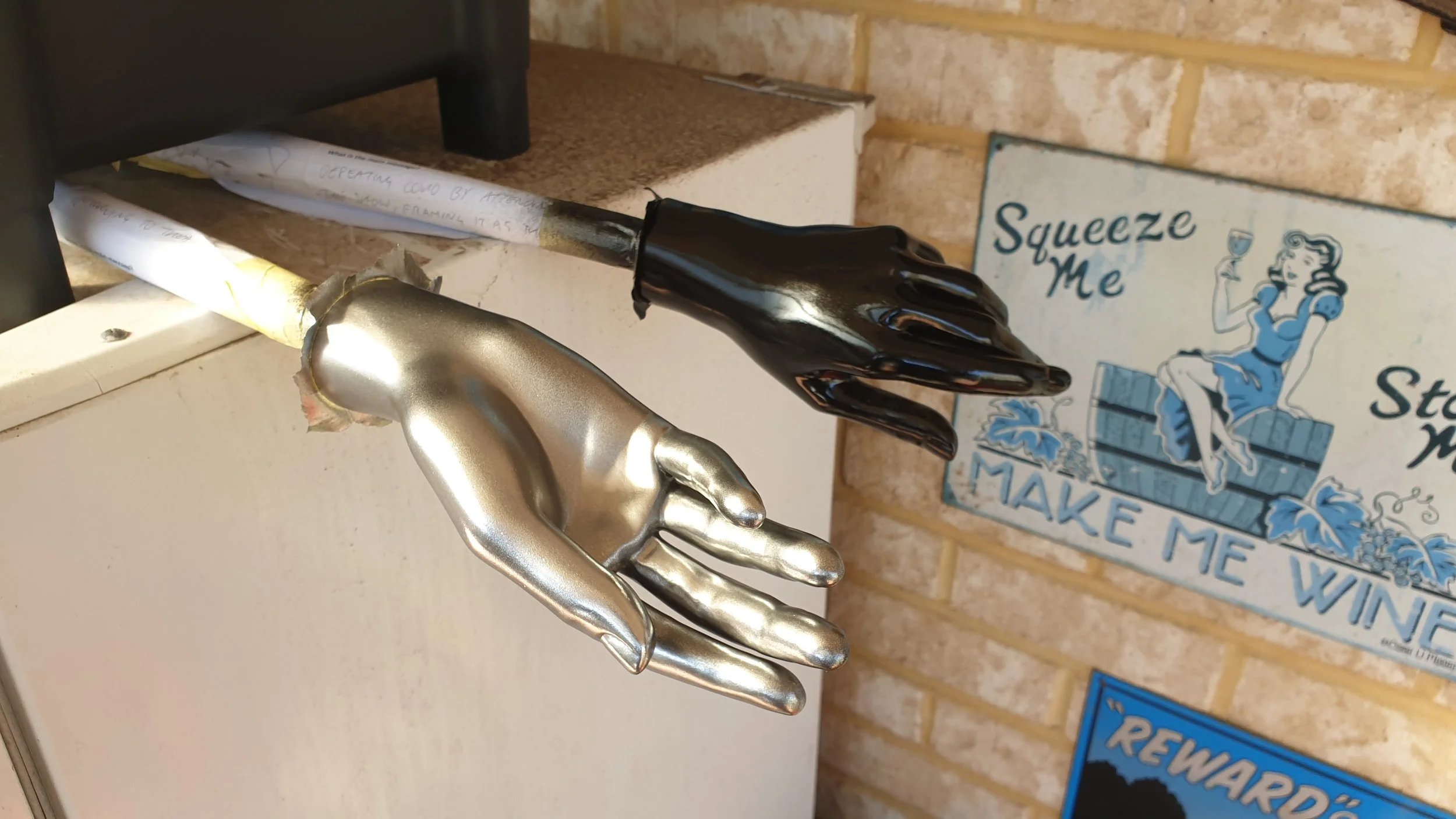 The gloves just didn’t fit my hands even after giving as much room as possible and they just ended up looking like badly made oven mittens and even trying to puppet just looked like a flaccid rag. So I bought some cheap mannequin hands of aliexpress and figured I would cover them with the same material. After a couple of experiments this just didn’t seem plausible for a variety of reason, so I went with a different option and it allowed me to finally experiment with a paint I’ve been dying to use… Molotow Chrome!